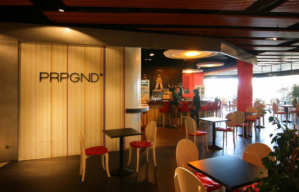 Realizamos el diseño de este Café & Snack Bar en el Mercado de Fuencarral Valencia. El local queda totalmente abierto a las zonas comunes del centro comercial, desde estas se puede ver el revestimiento de gresite cuyo diseño se realizo exclusivamente para este proyecto. La barra curva está realizada en dos piezas de madera maciza.